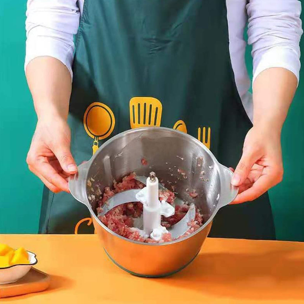 • The food grinder has 2 speed options, and it is equipped with 4 stainless steel blades. You can easily cut food such as onions, meat, garlic, nuts, meat, vegetables, fruits, etc. Ideal for home use, making baby food, etc.